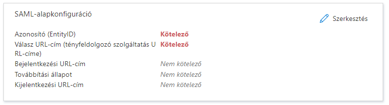 7. A SAML alapkonfiguráció pontban állítsuk be ezeket a változókat: Azonosító, Válasz URL,Bejelentkezési URL a PASSMAN_URL/api/authorize/saml2/PROVIDER_NAME -re.