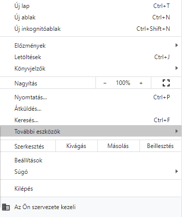 jobbra fent: '...' menü / További eszközök / Bővítmények