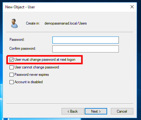 When adding a new user to an Active Directory or local system, by default, Windows will ask the user to change its password when logging in to the system for the first time.
