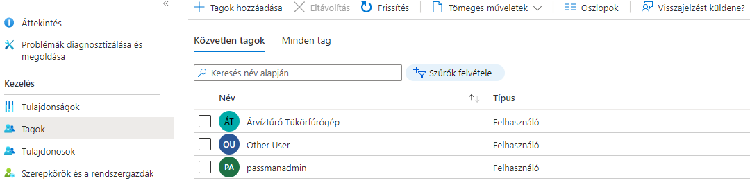 A tagok listája immár bővült a hozzáadott felhasználóval.