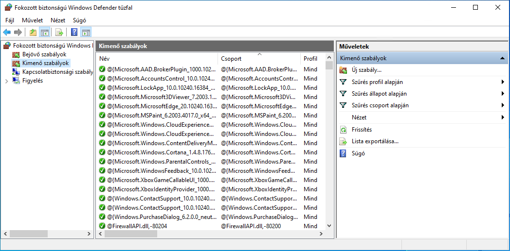 Új szabály... (jobbra fent). A lépések ugyanazok, mint a bejövő szabály létrehozásakor.