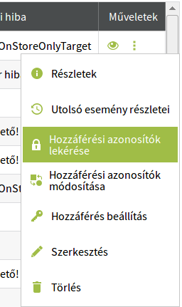 - Valamelyik mezőre jobb egérgombbal kattintva vagy a Műveletek oszlopban a ikonra kattintva a megjelenő menüből, Azonosítók kikérése menüpontot kiválasztva, vagy