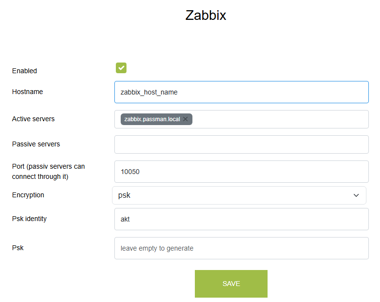 Hostname: This is the unique identifier set in Zabbix hostname, which must be entered here (it must be the same in Passman and Zabbix!)