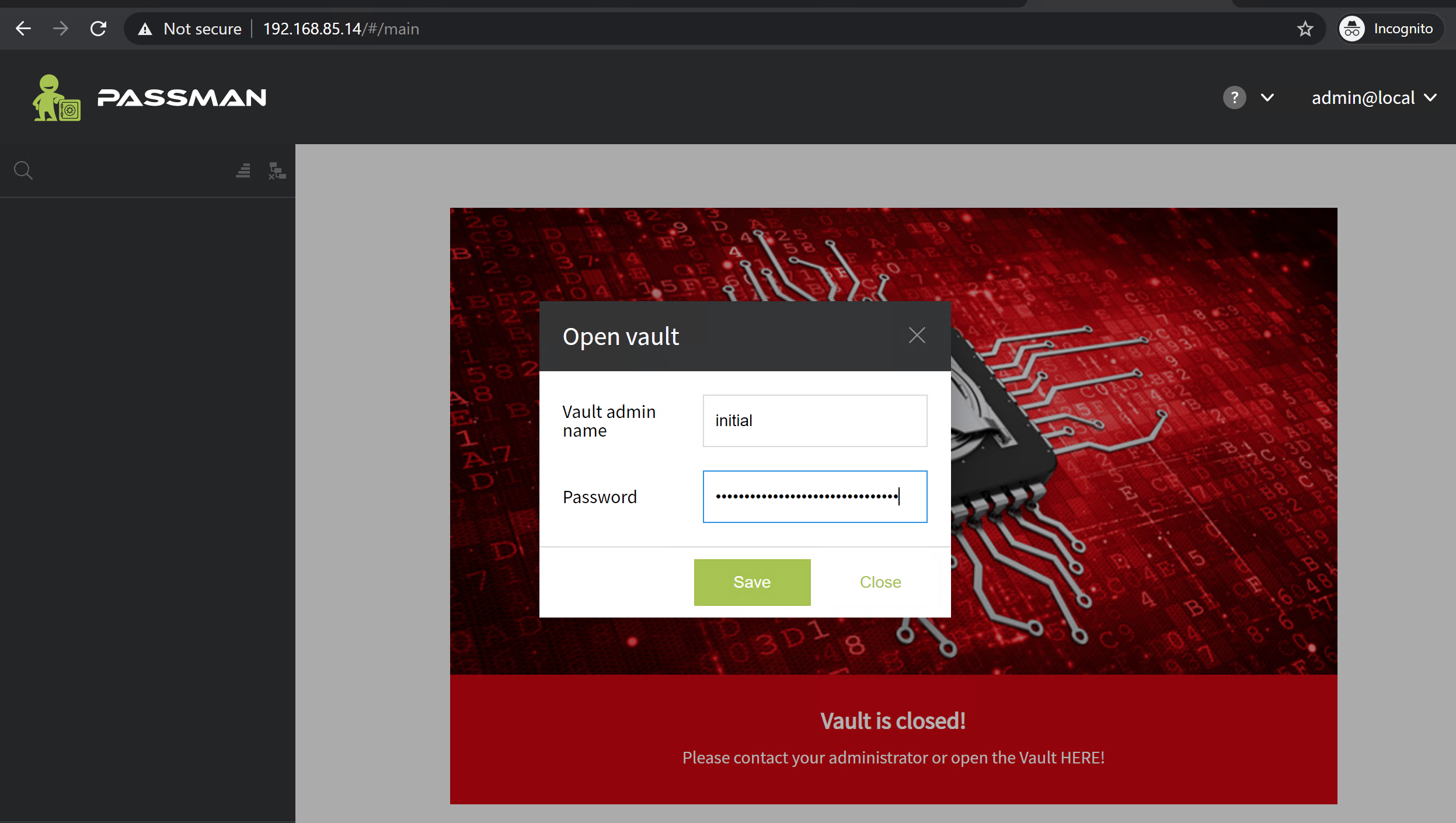 A Rendszer által generált azonosítók esetén a PassMan felhasználónév admin lesz, míg széfnyitáshoz az initial felhasználónevet (és jelszavát) kell megadnunk.