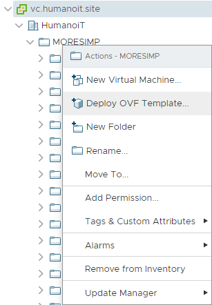 Jobb klick: Deploy OVF Template, majd töltsük fel a fájlt a gépről (Local file opció) :