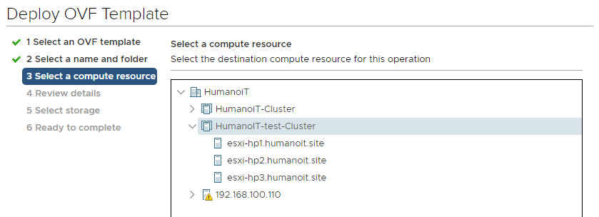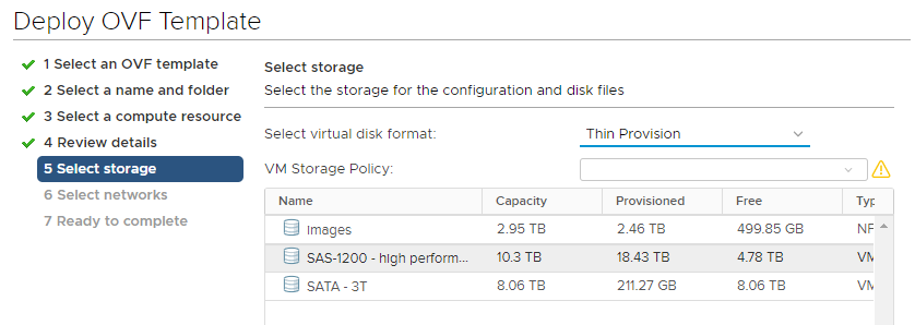 4. Válasszunk az elérhető store-ok (tároló-szerverek) közül, hogy hová kerüljön a virtuális gép: