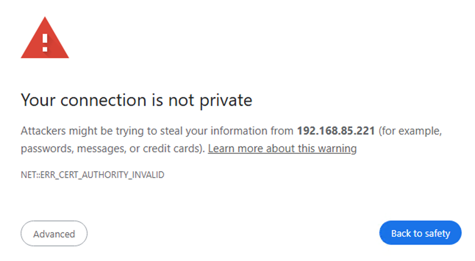 Még nincs érvényes, az adott vállalat számára kibocsájtott tanúsítvány feltöltve a rendszerbe, így 'self-sign tanúsítvány hibát' fogunk kapni. Ezt elfogadva jutunk a Padmin belépő oldalára.