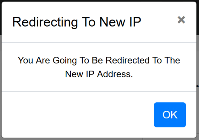 - Miután beállítottuk az IP címeket, nyomjuk meg a SAVE gombot. Változás esetén a rendszer átirányít az előzőleg beállított IP címre.