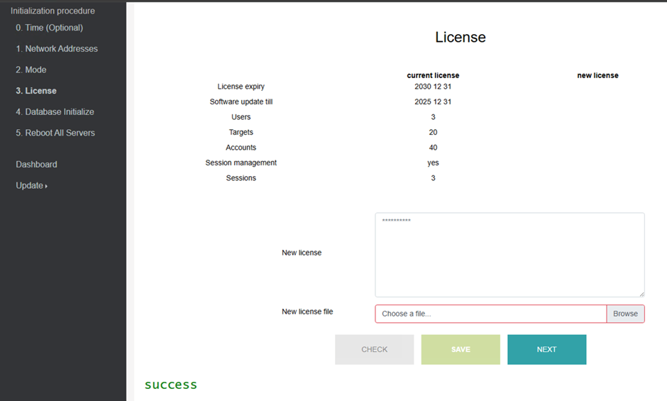 A licenc beállítása bal oldalt a License (Licensz) menüpontban található. A művelet minden tag-on le fog futni.