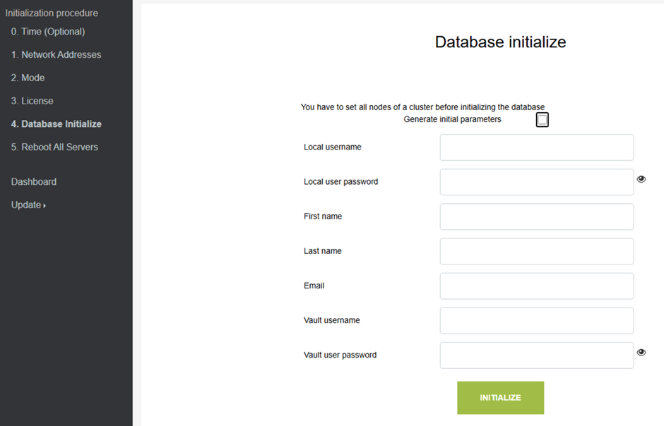 A bal oldali menüből válasszuk ki a 3. Database Initialize menüpontot.