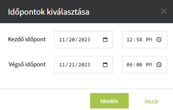A felugró ablakban kiválaszthatod, mettől meddig legyen érvényes az adott hozzáférés, majd kattints a <Mentés> gombra.