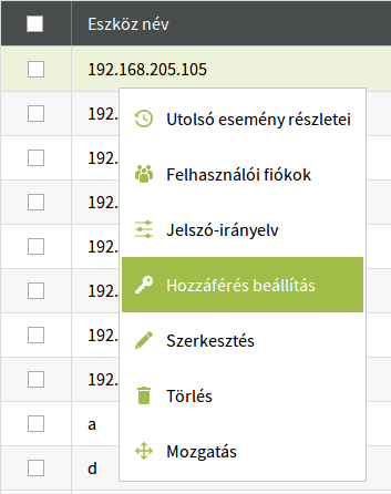 Hozzáférések beállítása: