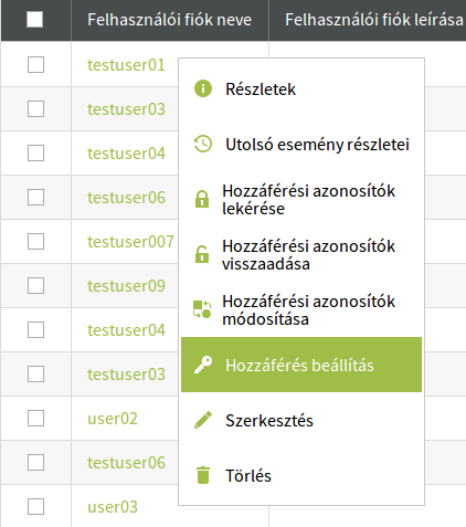 Lehetőségünk van meghatározni, hogy kinek és milyen szintű hozzáférése legyen információkhoz vagy műveletek elvégzéséhez. (A jogosultsági lehetőségek listája itt található.)