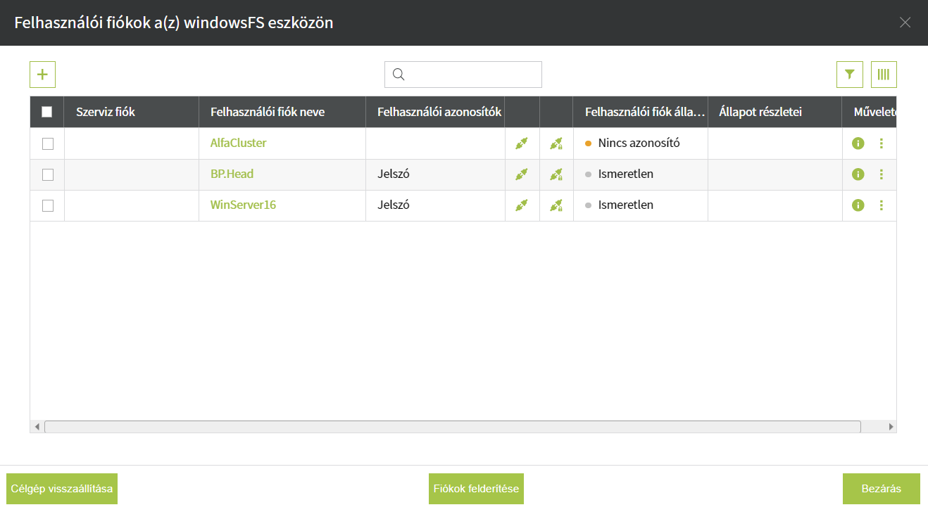 Lehetséges, hogy visszaállítás után kevesebb, vagy több felhasználói fiók jelenik meg, mint amit előzőleg láttunk a felhasználói fióklistában!