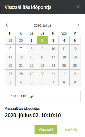 3. A megjelenő naptárban állítsuk be az időpontot (nap / óra/ perc/ mp), és kattintsunk a Visszaállít gombra.